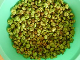 7~8월에 따는 개다래 충영은 주로 생것을 끓는 물에 데치여 건조를 하여 약으로