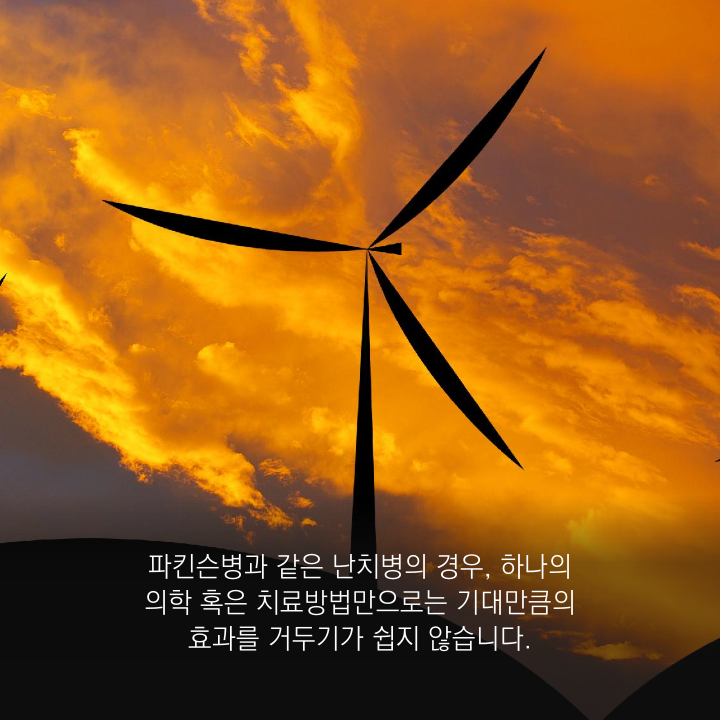 파킨슨병과 같은 난치병의 경우, 하나의 의학 혹은 치료방법만으로는 기대만큼의 효과를 거두기가 쉽지 않습니다. 이를 위해 우리몸한의원에서는 다음과 같은 방법으로 치료에 임하고 있습니다. 파킨슨병에 대한 끊임없는 연구를 통해 한의학뿐만 아니라 현대의학, 대체의학 등 가능한 모든 의학적 방법을 통합하여 파킨슨병 치료와 증상의 개선을 도와드리고 있습니다.