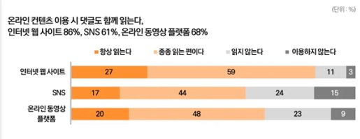 즉 주 소비층인 20대에서 40대의 영상 시청 시간은 짧고, 댓글 의존도가 높아지고 있다.